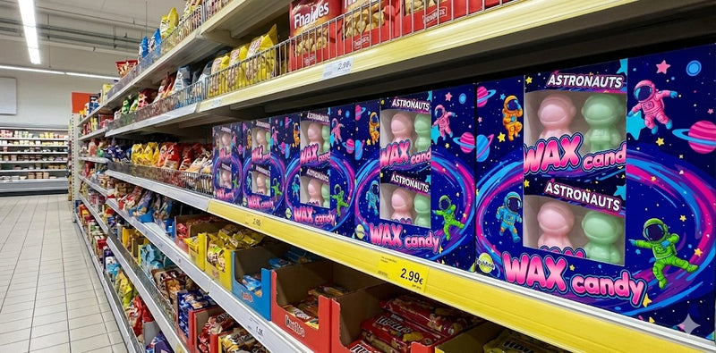Designed specifically for high traffic checkout and impulse zones, our Wax Candy Astronauts require minimal shelf space while delivering maximum margin.