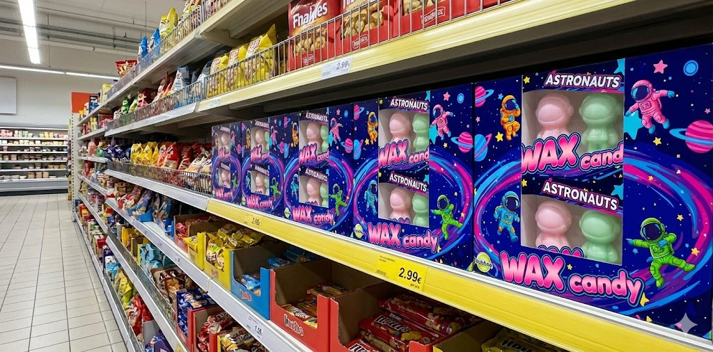 Each box contains 4 Wax Candy Astronauts in four different flavors